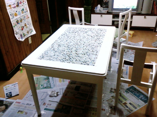 집에 있던 칙칙한 갈색의 오래된 식탁을 리폼했다.