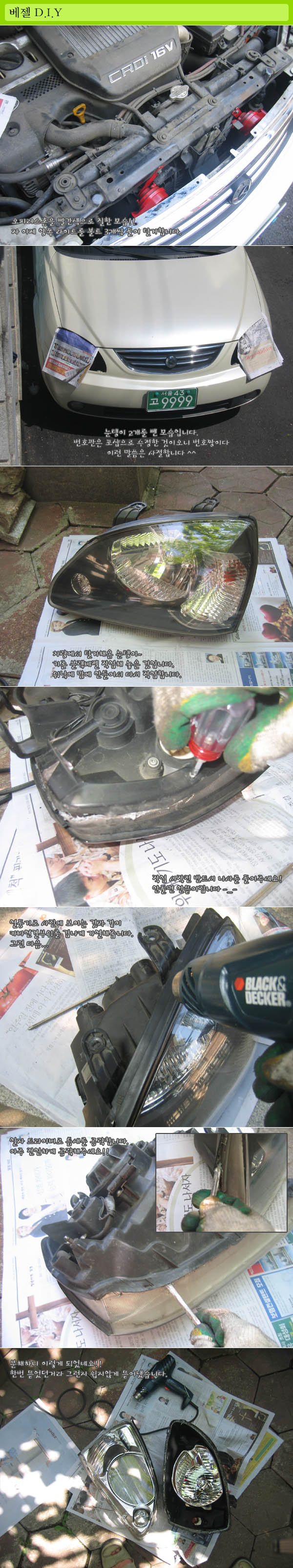 정말 맘에 안듭니다. 그렇다고 헤드라이트를 바꿀 수도 없는 노릇이고, 암튼 작업하실때 이점 반드시 신경써줄 것을 당부해드리고 싶네요.