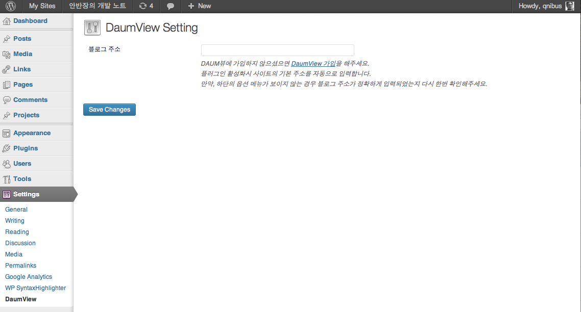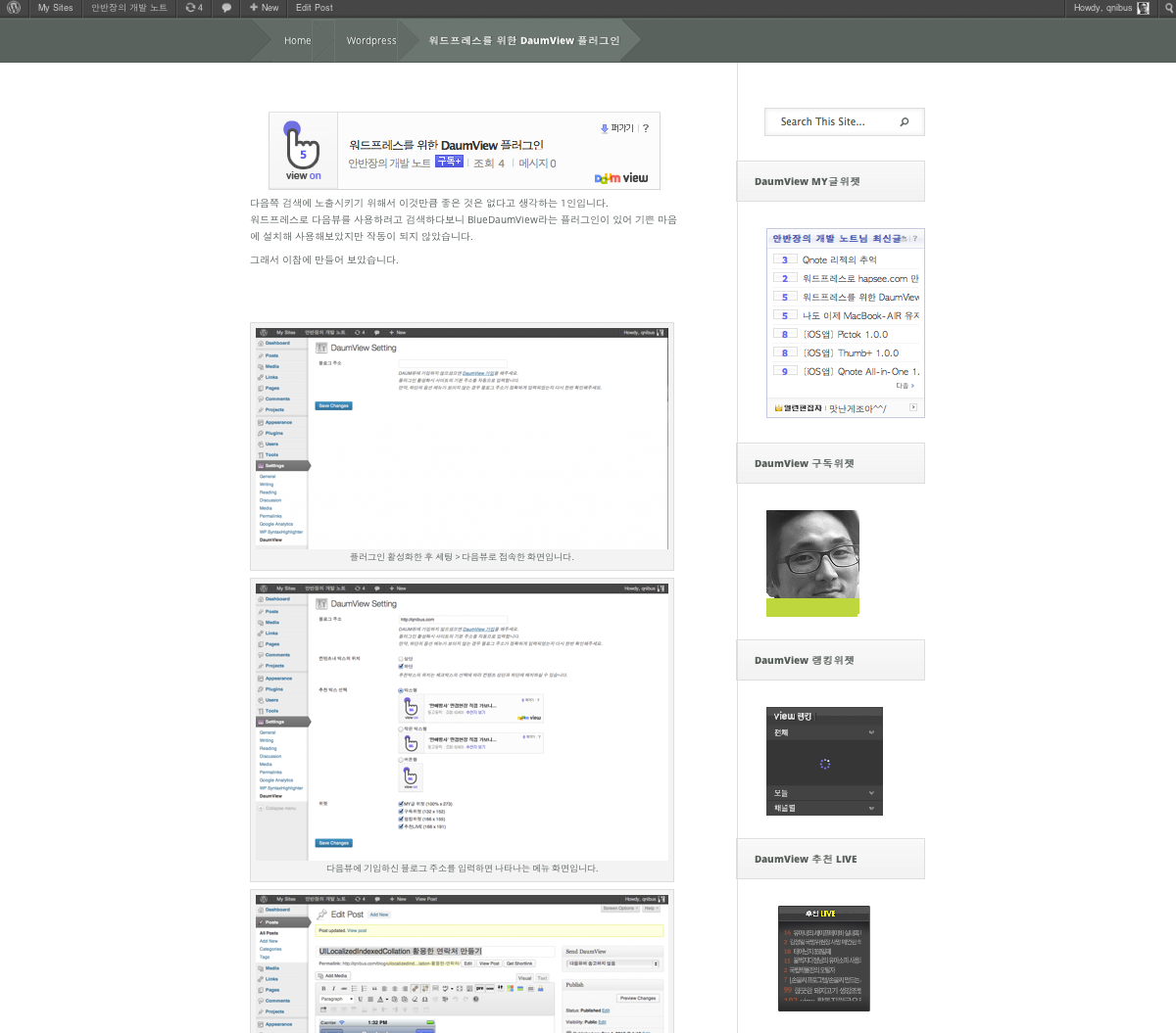 15. 안녕하세요! 처음 인사드립니다~! 워드프레스에 다음뷰 플러그인을 설치했구여~