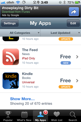 AppShopper : http://appshopper.com/아이폰에서 “appshopper”를 검색하시면 다음과 같은 어플을 보실 수 있습니다.